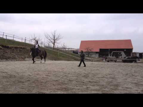 Avec Tomek, encore beaucoup de travail, nous ne sommes qu'à la base. Pour l'instant, on travaille l'impulsion, mise en avant, hauteur de mise en main juste, poids sur l'arrière main, cheval droit et souple mais également ma position, apprendre à être moins dure avec mes mains (hé oui, la jument avait une bouche très dure, de mauvaises habitudes qui ressortent), apprendre à doser mes aides, mon rapport mains/jambes. Nous ne faisons pas de figures compliqués, nous restons sur les bases… voltes, diagonales, longueurs.